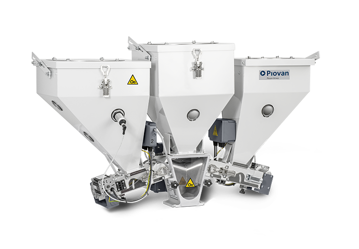 Piovan gravimetric mixers are available in various configurations and can dose up to 8 materials in pellets and for outputs from 30 to 1800 kg/h.